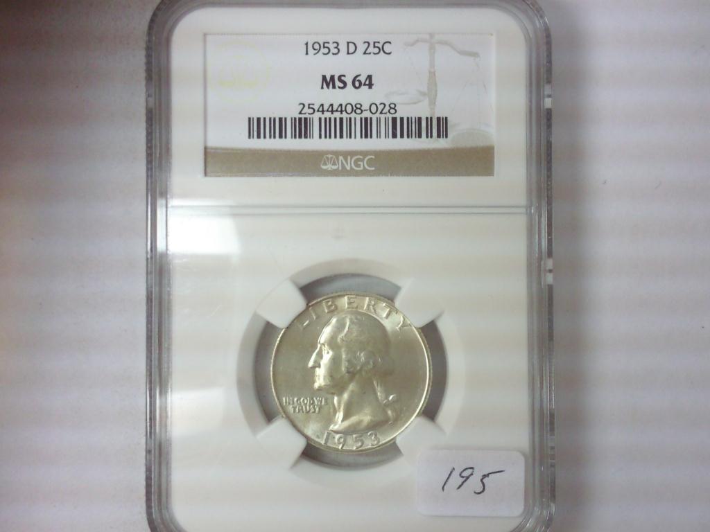 1953-D WASHINGTON SILVER QUARTER NGC MS64