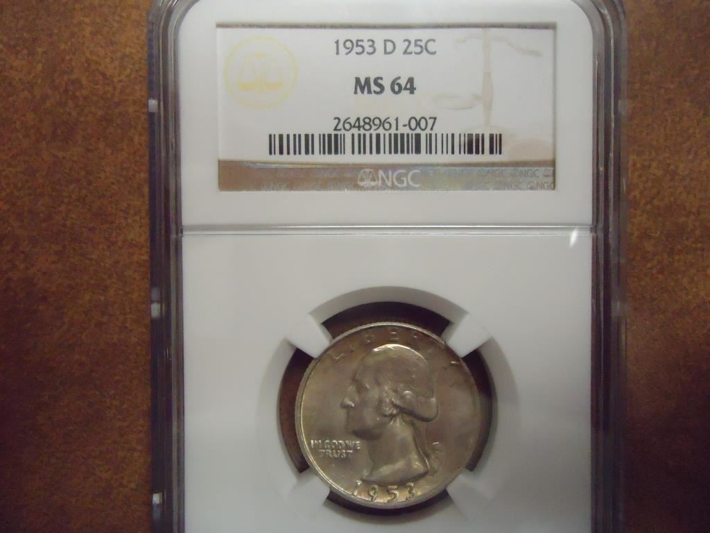 1953-D WASHINGTON SILVER QUARTER NGC MS64