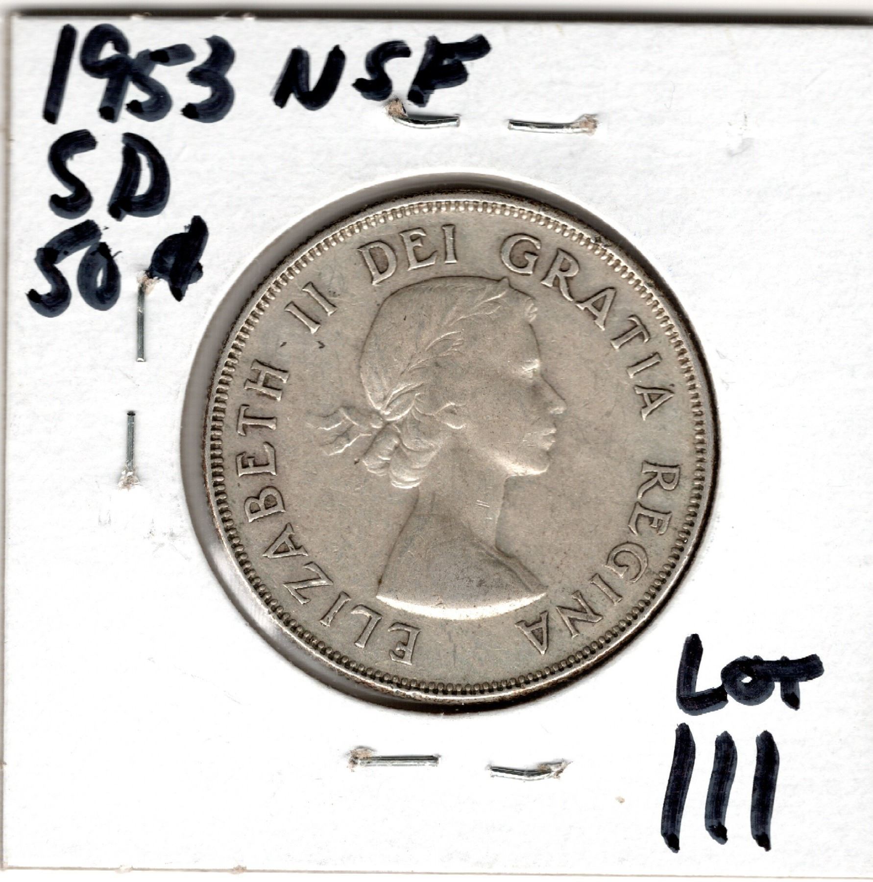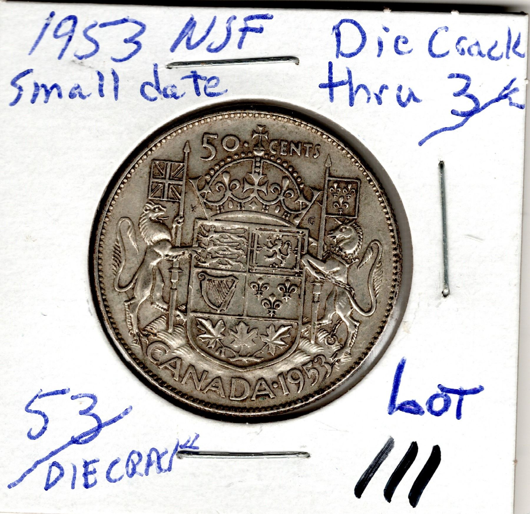 1953 DIE CRACK THRU 3 50 CENT PIECE
