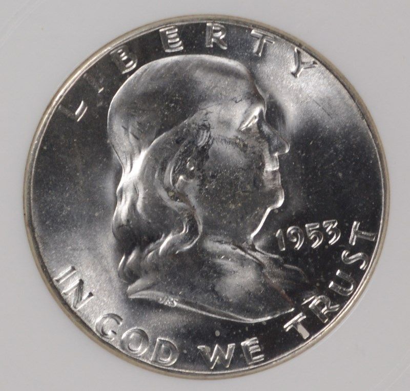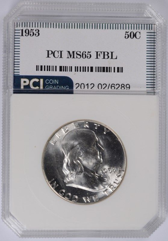 1953 FRANKLIN HALF DOLLAR, PCI MS-65 FBL TRENDS FOR $700.00