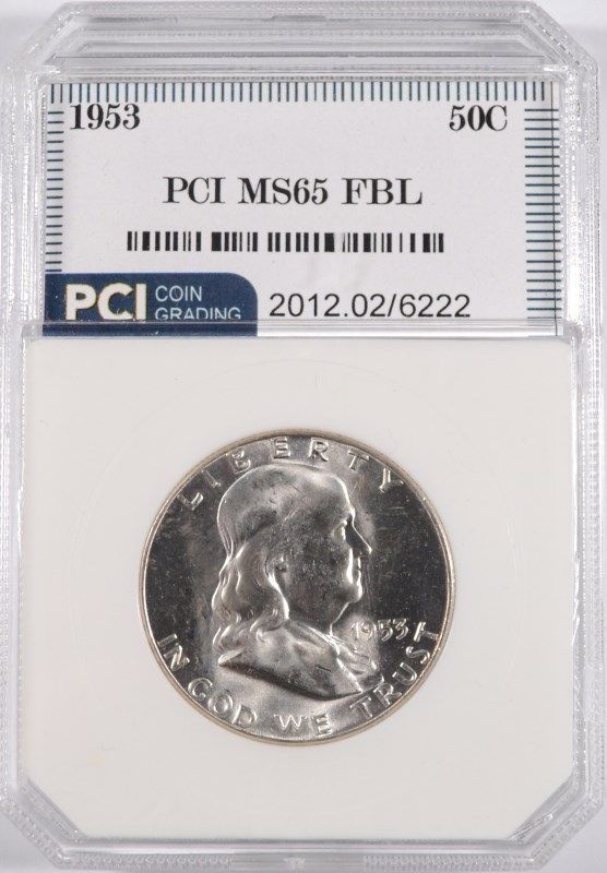 1953 FRANKLIN HALF DOLLAR, PCI MS-65 FBL TRENDS FOR $700.00