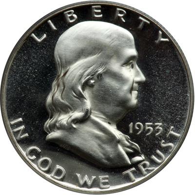 1953 Franklin Half Dollar. PCGS graded Proof 68 Cameo. A superb white gem cameo proof. Here is the coin for a top rated Registry Set. Pop 4; none better (PCGS # 86694) .