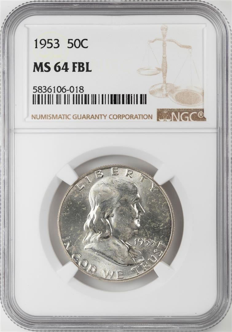 One 1953 Franklin Half Dollar Coin NGC MS64FBL. NGC Certified.