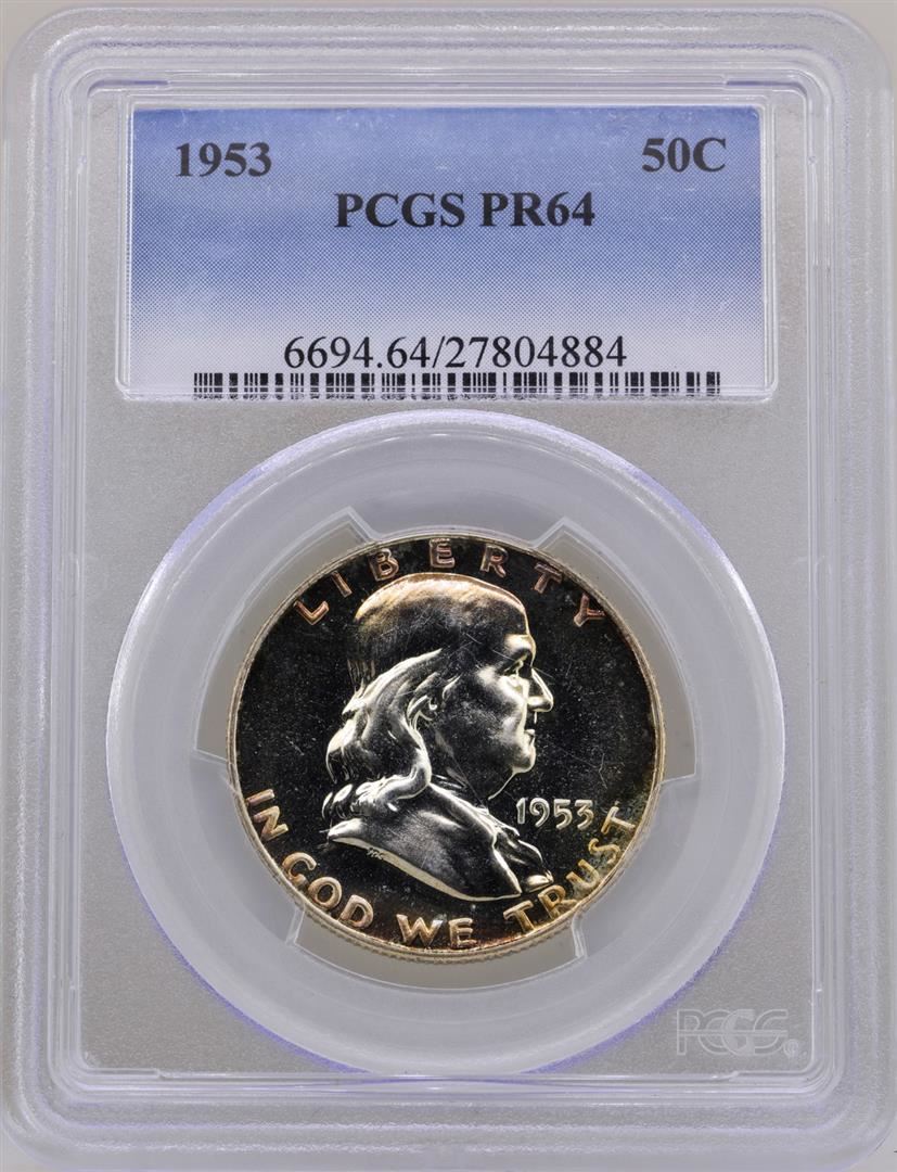 One 1953 Franklin Half Dollar Proof Coin PCGS PR64. PCGS Graded.