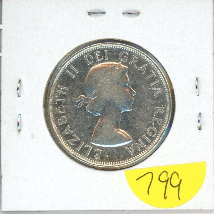 1953 Large Date Shoulder Fold Canadian Silver 50 Cents. VF-20 or better.