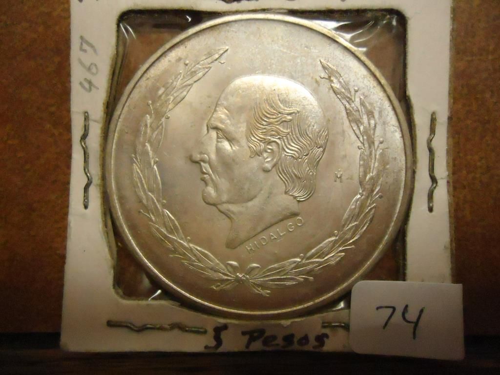 1953 MEXICO SILVER 5 PESOS .6430 OZ. ASW UNC