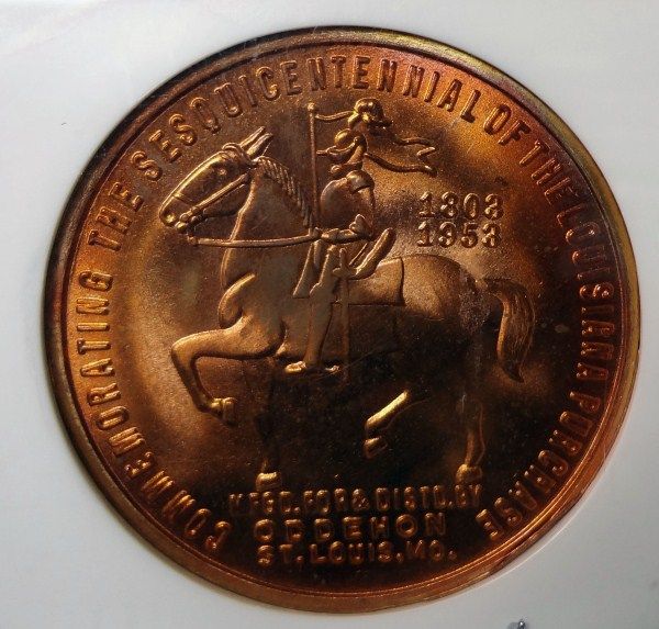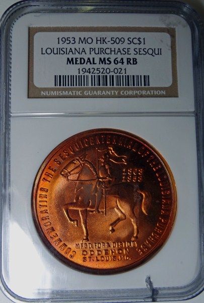 1953 MO HK-509 SC $1.00 LA. PURCHASE SEQUI MEDAL NGC MS64 RB RARE!