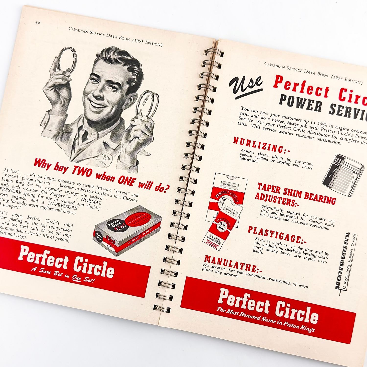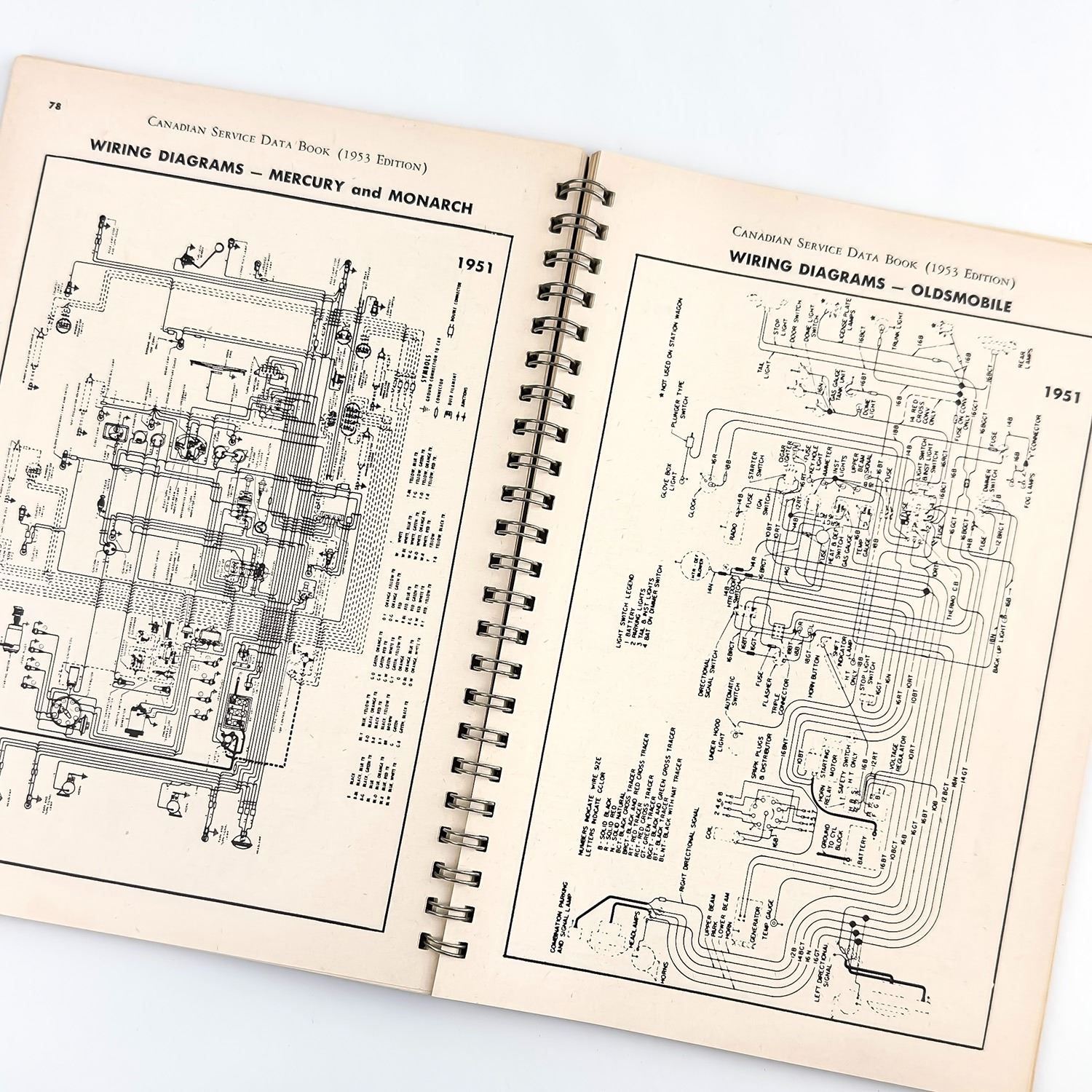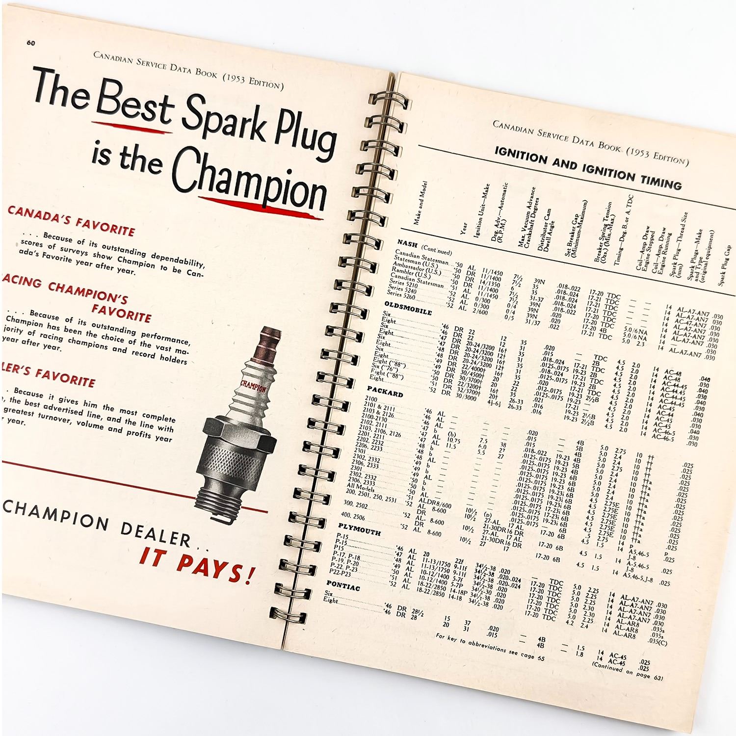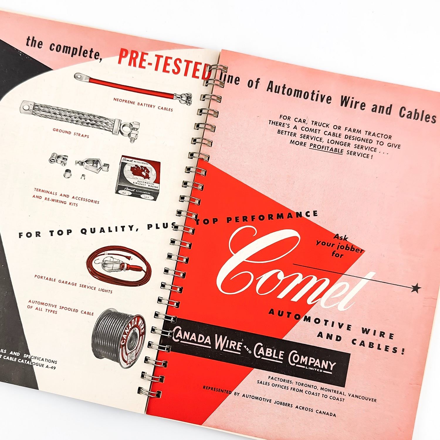 #9058 - VINTAGE ORIGINAL 1953 (MODELS 1946-1952) MOTOR MAGAZINE’S CANADIAN SERVICE DATA BOOK. A COMPLETE SERVICE REFERENCE FOR THE AUTOMOTIVE MECHANIC. SEE PHOTOS FOR MORE INFO. PUBLISHED ANNUALLY BY MOTOR MAGAZINE, TORONTO, CANADA. SPIRAL BINDING - 179 PAGES.