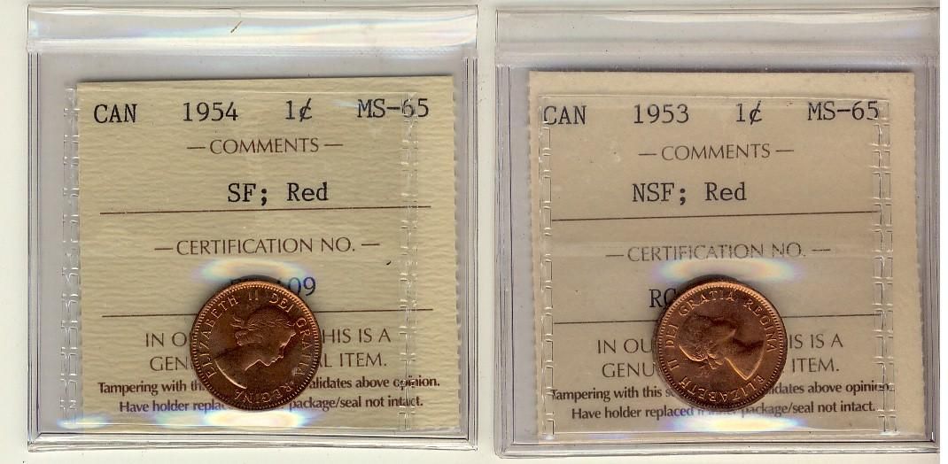 1953 NSF,1954 SF 1¢, Both ICCS MS65 Red.