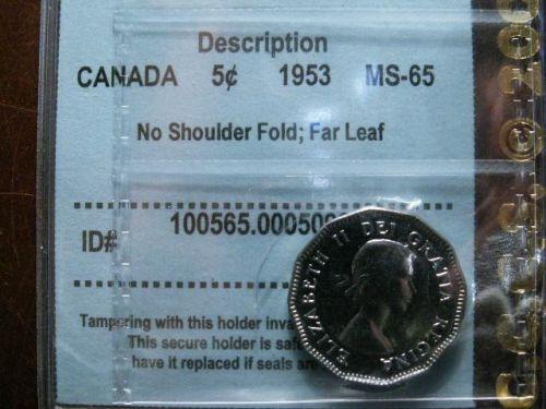 1953 NSF 5¢ CCCS MS65. Well struck with full lustre.