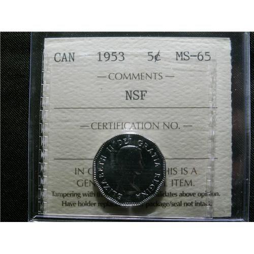 1953 NSF 5¢ ICCS MS65. Fully struck with full luster. A true "Gem"