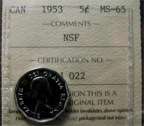 1953 NSF 5¢ ICCS MS65. Fully struck with full luster. A true "Gem"