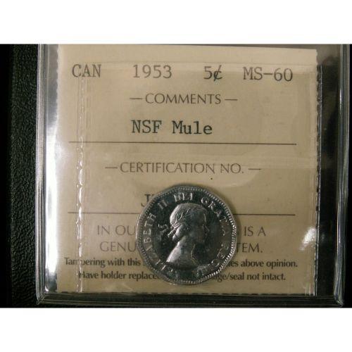 1953 NSF 5¢ Near 'RARE MULE' ICCS MS-60. Rare and underrated in Minstate condition. Should bring in a premium
