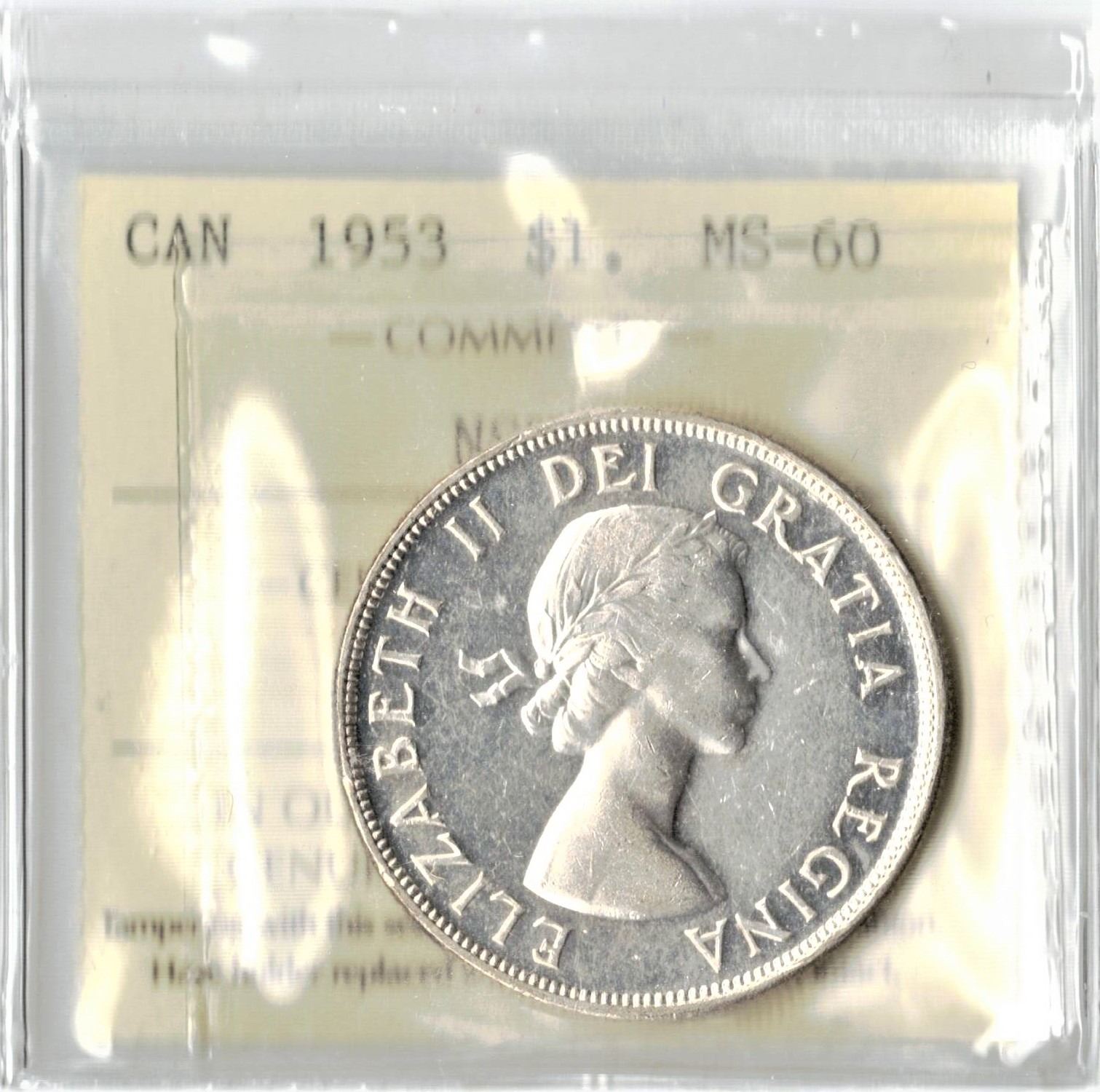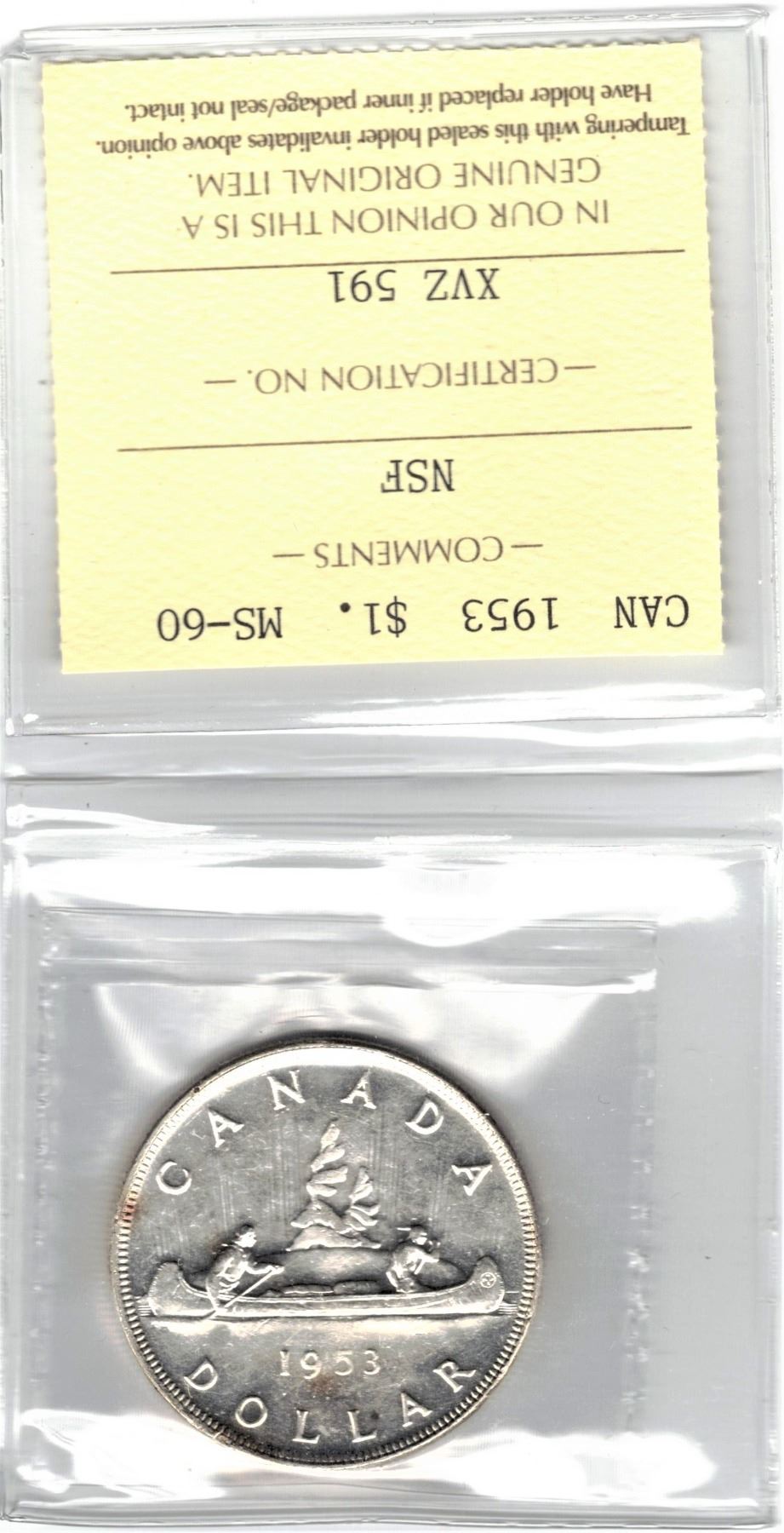 1953 NSF Canadian Silver Dollar ICCS Graded - MS-60