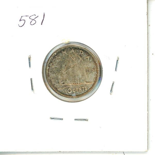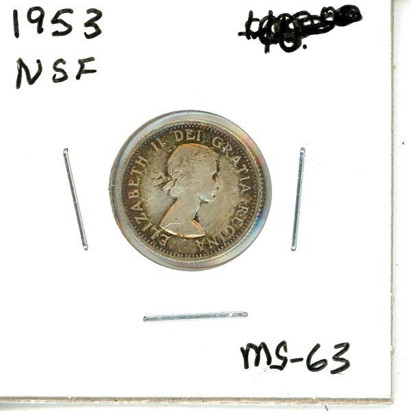 1953 NSF Canadian Silver Ten Cent Coin