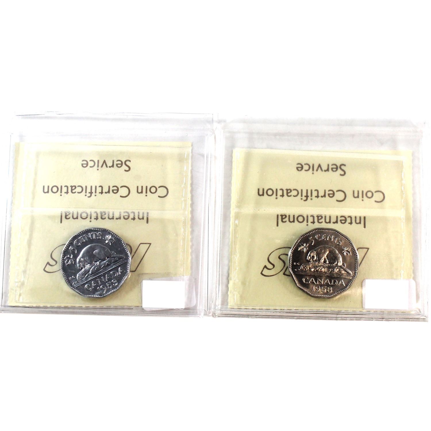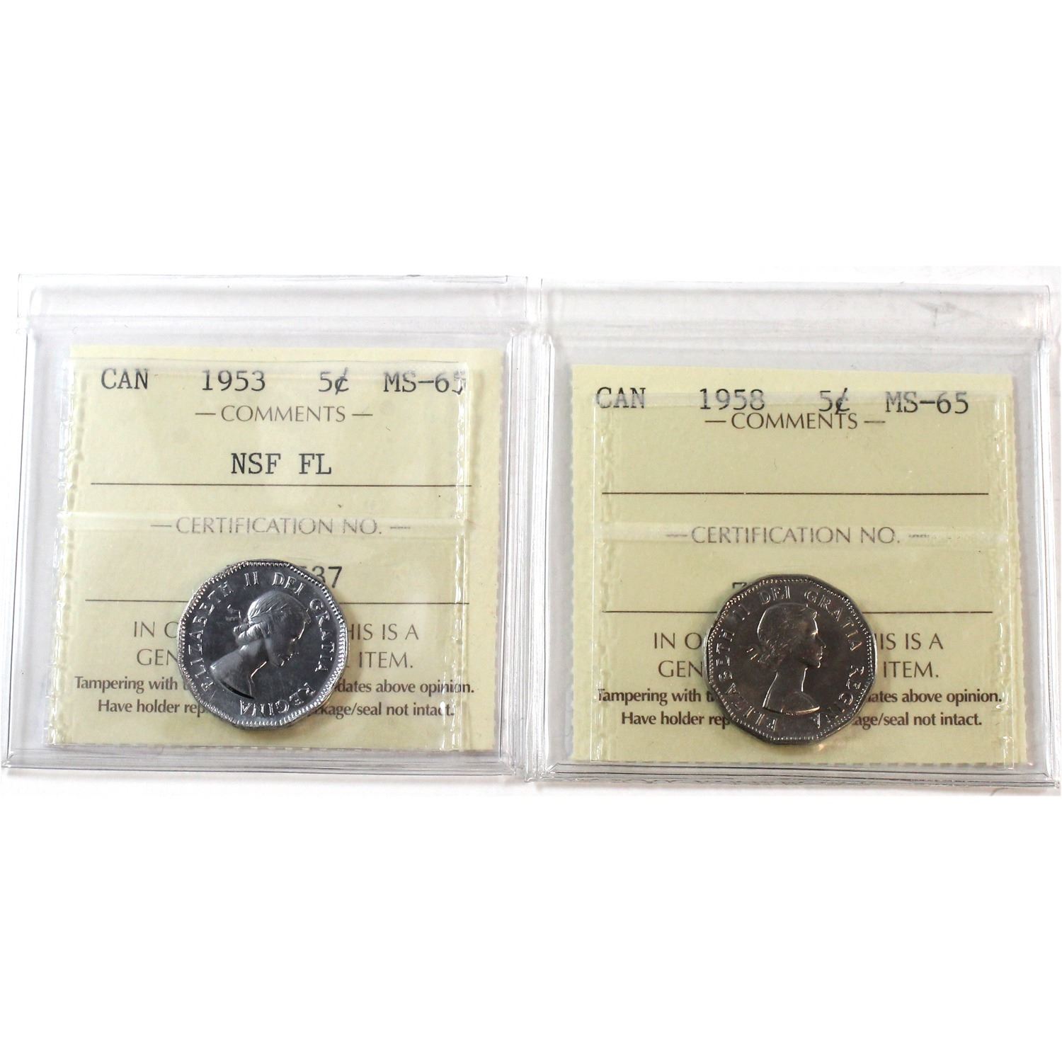 1953 NSF FL & 1958 Canada 5-cent ICCS Certified MS-65. 2pcs