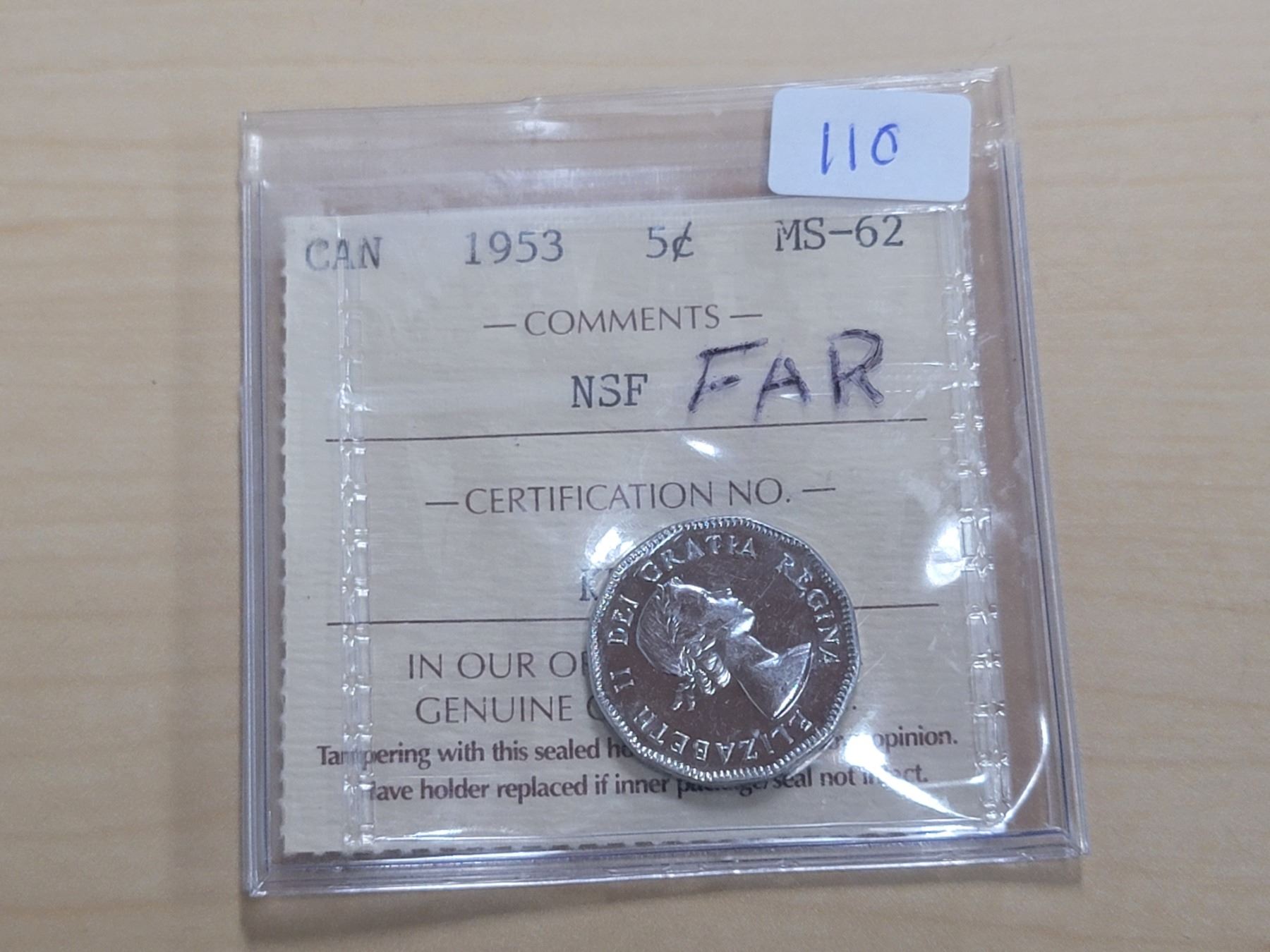 1953 NSF Far Canada Silver 5¢; MS 62 (ICCS # KE 412)