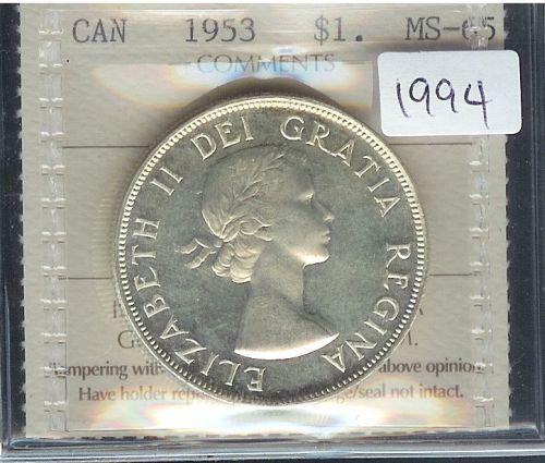 1953 "NSF" ICCS MS-65PQ, fully struck with amazing lustre. Great fields and very clean surfaces. One of the best "Queen Elizabeth II" example we have ever seen. Defenitely a Gem! This is the scarcer variety! This coin should sell at a much higher pr