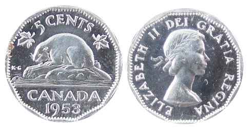 1953 NSF, NEAR LEAF (MULE) 5¢ ICCS SP-64 HEAVY CAMEO. Very rare.