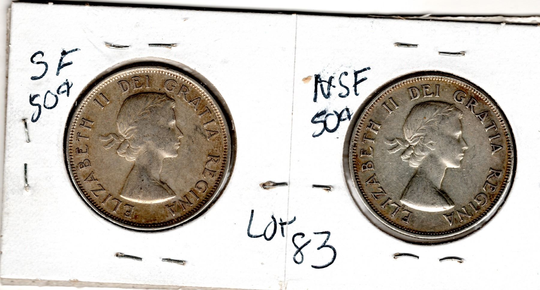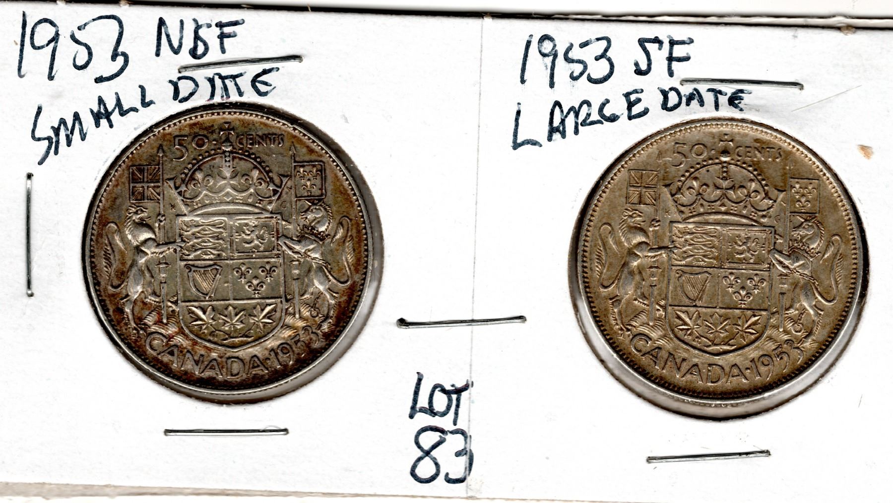 1953 NSF SMALL DATE AND SF LARGE DATE FIFTY CENTS