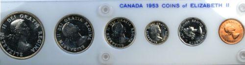 Canada 1953 No Shoulder Fold Year Set in Capital Holder. This is a very nice, original set, Choice to Very Choice Uncirculated. The Cent is Red and the silver has very attractive light rim toning and light cameos