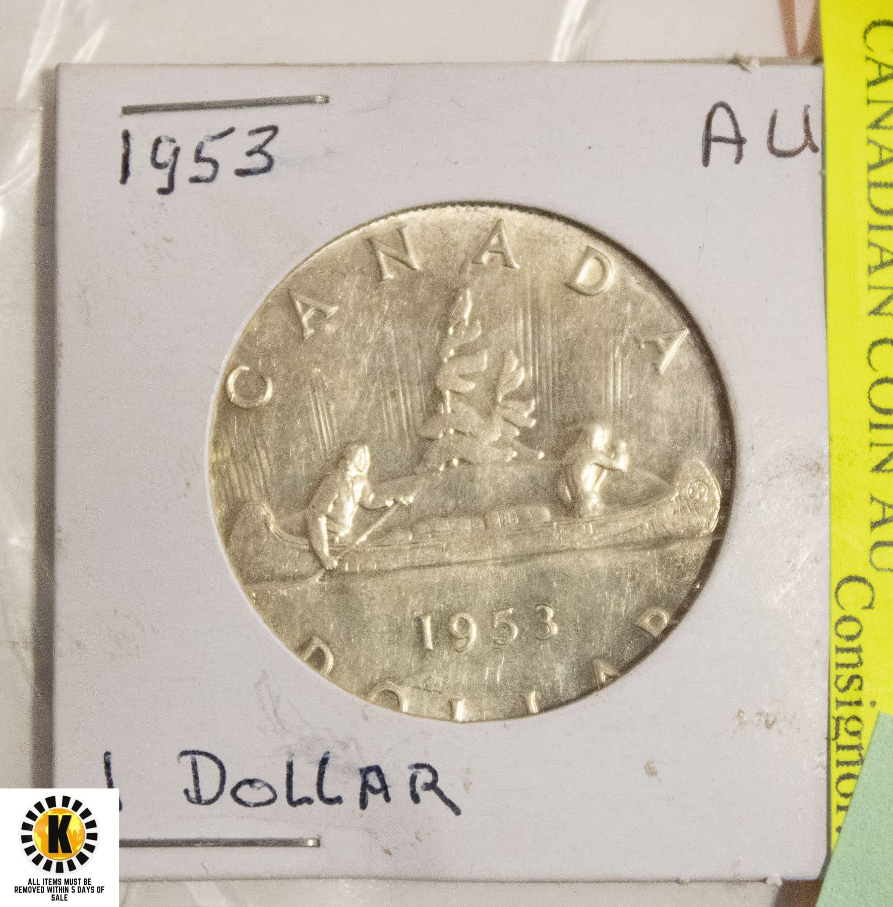 1953 ONE DOLLAR SILVER CANADIAN COIN