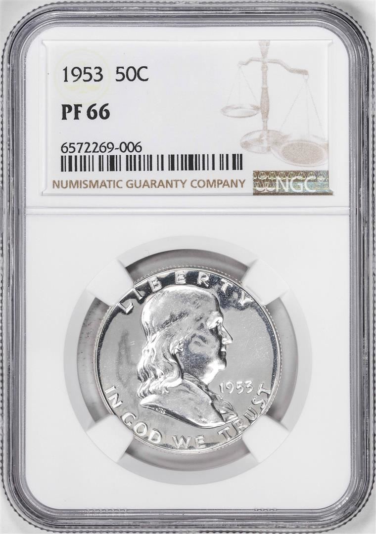 One 1953 Proof Franklin Half Dollar Coin NGC PF66. NGC Certified.