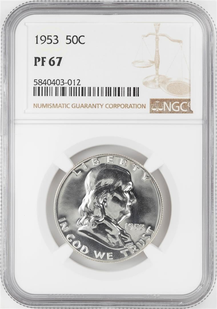 One 1953 Proof Franklin Half Dollar Coin NGC PF67. NGC Certified.
