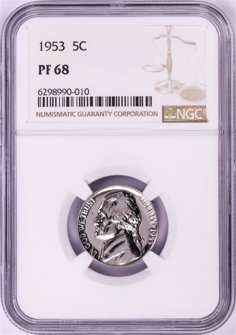 One 1953 Proof Jefferson Nickel Coin NGC PF68. NGC Certified.
