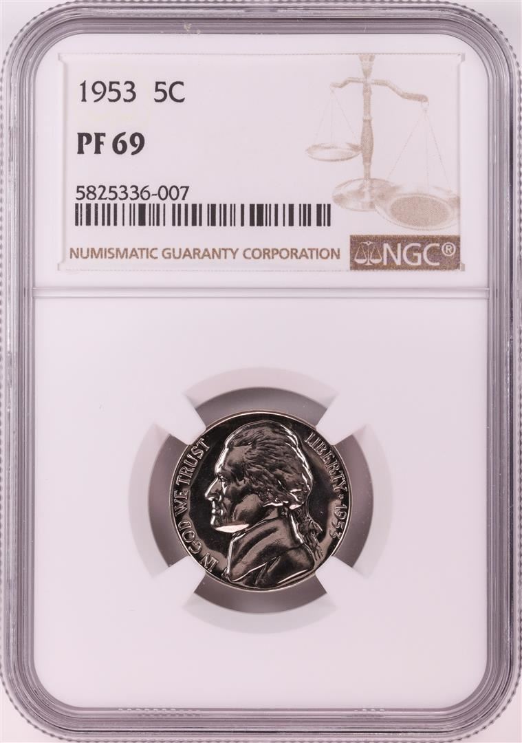 One 1953 Proof Jefferson Nickel Coin NGC PF69. NGC Certified.