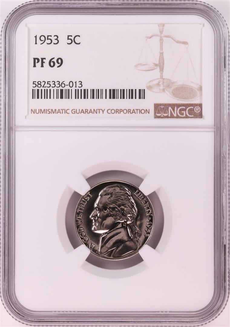 One 1953 Proof Jefferson Nickel Coin NGC PF69. NGC Certified.