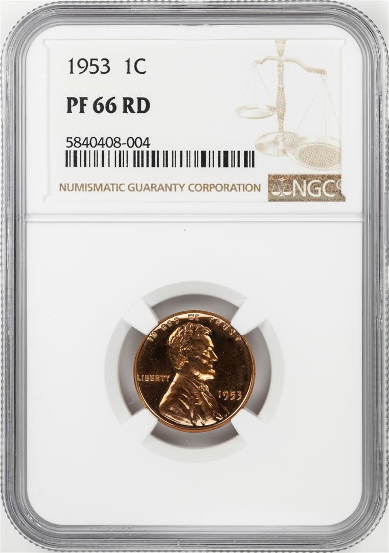 One 1953 Proof Lincoln Wheat Cent Coin NGC PF66RD. NGC Certified.