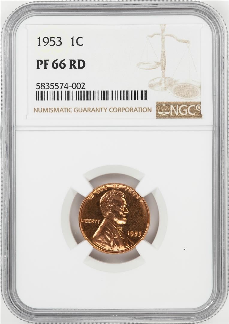 One 1953 Proof Lincoln Wheat Cent Coin NGC PF66RD. NGC Certified.