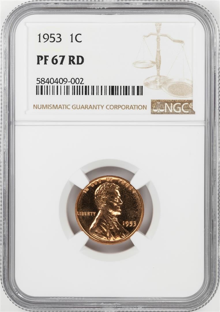 One 1953 Proof Lincoln Wheat Cent Coin NGC PF67RD. NGC Certified.
