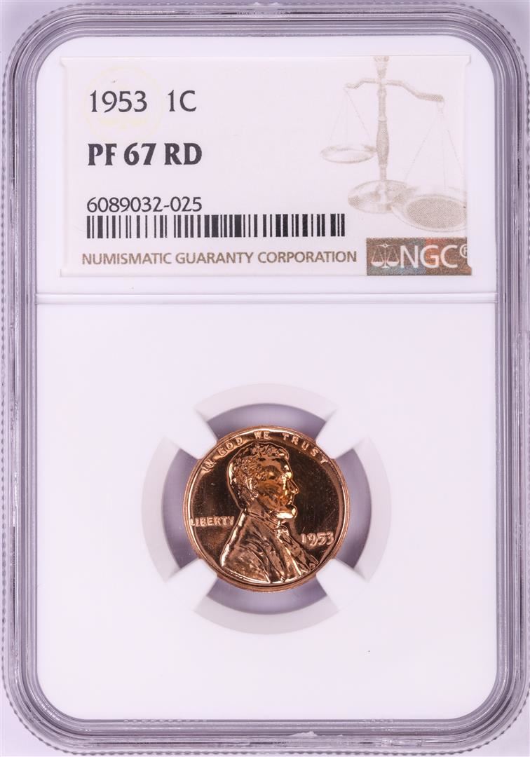 One 1953 Proof Lincoln Wheat Cent Coin NGC PF67RD. NGC Certified.