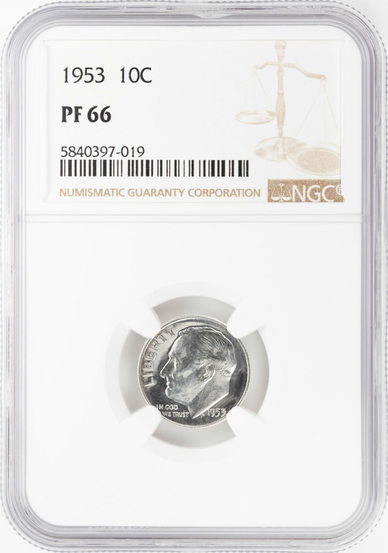 One 1953 Proof Roosevelt Dime Coin NGC PF66.