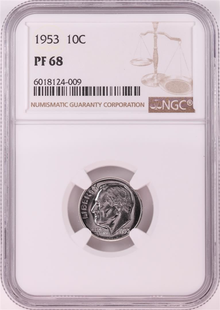 One 1953 Proof Roosevelt Dime Coin NGC PF68. NGC Certified.