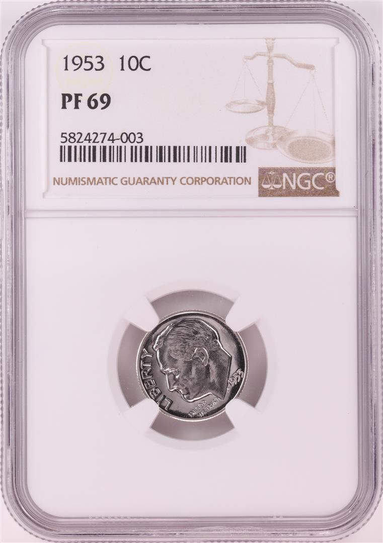 One 1953 Proof Roosevelt Dime Coin NGC PF69. NGC Certified.
