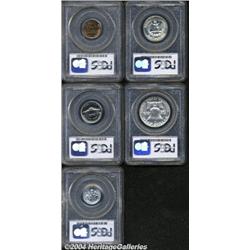 <table><tr><td><table><tr><td>1953 Proof Set PR65 to PR66 PCGS. The set includes: Cent PR65 Red, an orange-red beauty; Nickel PR65, brilliant and exquisitely struck; Dime PR65, a splendid snow-white Gem; Quarter PR66, faintly toned, seemingly pristine; and a Half Dollar PR66, a few pinpricks at 4 o'clock but otherwise immaculate.From the Robert Bowling Collection. 5 Coins <BR><BR><B>Important notice:</B> Heritage usually auctions material at the rate of 200-250 lots per hour. On some occasions eBay Live bid software or the Internet may not be able to keep up with the pace of the auction. We recommend placing a realistic absentee bid now as insurance to avoid disappointment. Occasionally the auctioneer may eliminate or reject an eBay Live bid, and the auctioneer may also reopen a lot after the close of the eBay live bidding (usually because we missed an audience bid), and may reject your bid even if it shows you as the winning bidder. By bidding via eBay Live, you agree that Heritage may award the lot to another bidder at its sole discretion under the circumstances described above or any other reasonable circumstances. Since eBay bids are not shown to us until we open the lot on the floor, we treat those bids just like floor bids. In most cases the floor responds before the eBay bid is presented to us, due to Internet lag time, so for consistency we have made it a policy that floor bids are always considered first over tie eBay live bids. Also please note that all Heritage lots purchased through eBay Live carry a 20% Buyer's Premium. Please make sure you read the Terms and Conditions before you bid. <BR><BR><B>IMPORTANT ANNOUNCEMENT ABOUT RESERVES:</B> Heritage now divulges all reserves on its web site 7 days before every auction. If you want to know whether the reserve on this lot has been met, and if not, what the reserve amount is, please visit this lot page on the HeritageCoin.com web site, or email: bid@HeritageGalleries.com </span></font></td></tr></table></td></tr></table>