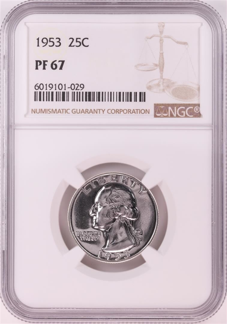 One 1953 Proof Washington Quarter Coin NGC PF67. NGC Certified.