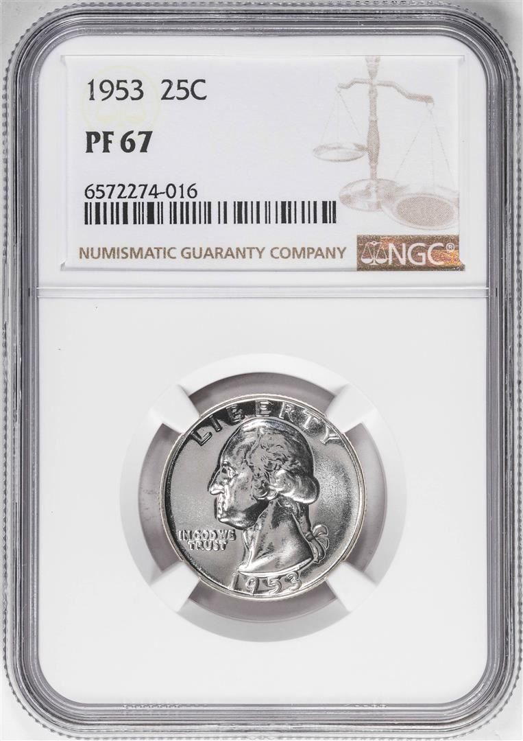 One 1953 Proof Washington Quarter Coin NGC PF67. NGC Certified.