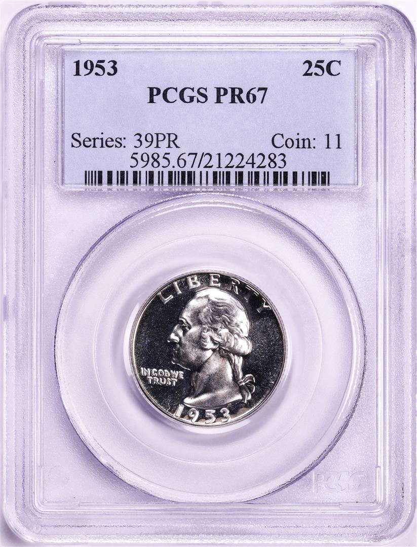 One 1953 Proof Washington Quarter Coin PCGS PR67. PCGS Graded.