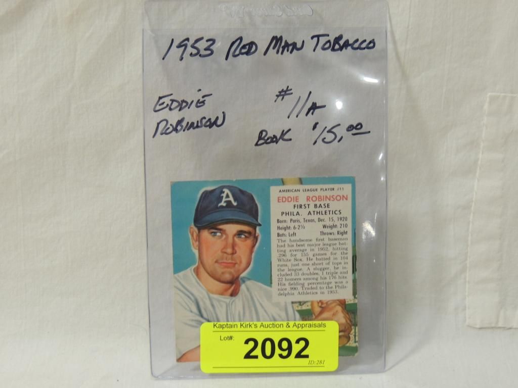 1953 RED MAN TOBACCO BASEBALL CARD. BASEBALL COLLECTIBLE. VINTAGE CARD. GOOD CONDITION. IN PLASTIC SLEEVE. AS SHOWN. SEE PHOTO FOR MORE DETAILS.