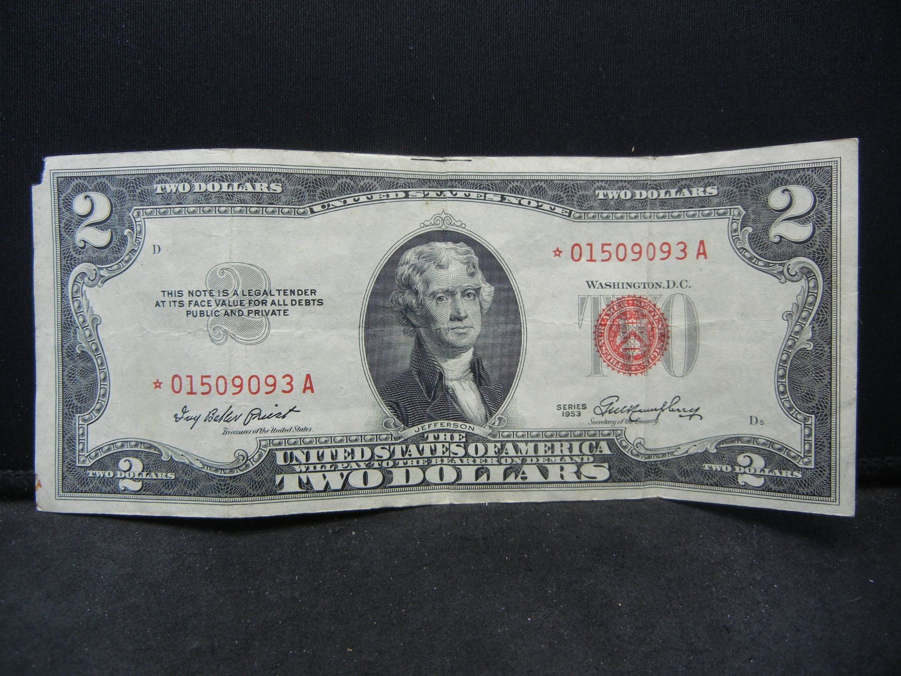 1953 Red Seal Star Two Dollar Note, Low Serial Number