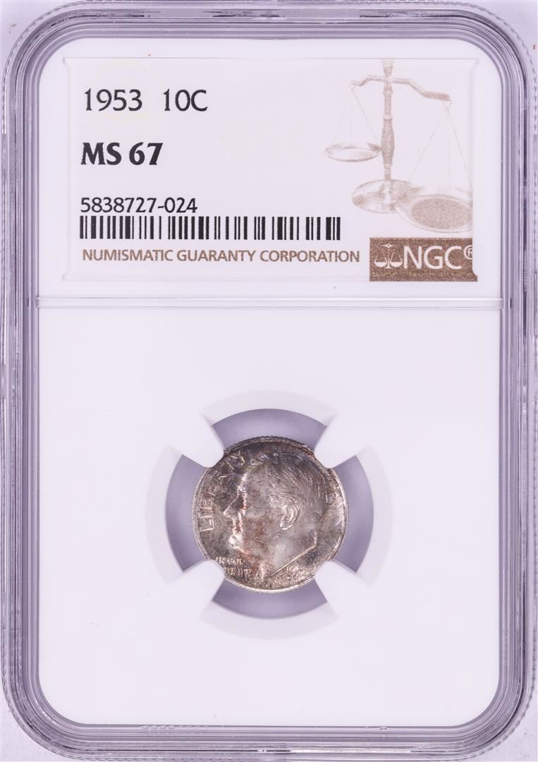 One 1953 Roosevelt Dime Coin NGC MS67. NGC Certified.