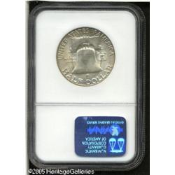 <B>1953-S 50C MS67 NGC.</B></I> A remarkable Superb Gem, well struck with lovely satin luster and pastel yellow-green color. Nearly mark-free, a couple of small ticks appear on the H of HALF, on the lower reverse. Conditionally scarce at this grade level, with none higher at NGC. Population: 5 in 67, 0 finer (1/05).<BR><I>From The Mike Jacobson Collection.</B></I> Lot:8264