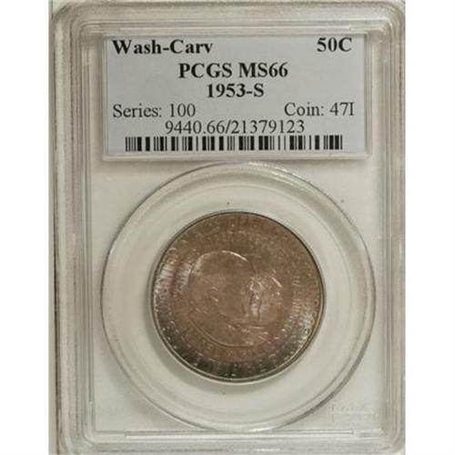1953-S 50C Washington-Carver MS66 PCGS. PCGS Popul