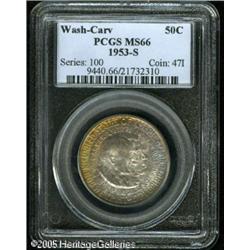 <B>1953-S 50C Washington-Carver MS66 PCGS.</B></I> Typically struck with rich yellow-gold, rose-gray, and steel-blue toning, on each side, and bright satiny luster, with just one or two small milling marks on obverse and reverse alike. Population: 44 in 66, 3 finer (1/05). Lot:8630