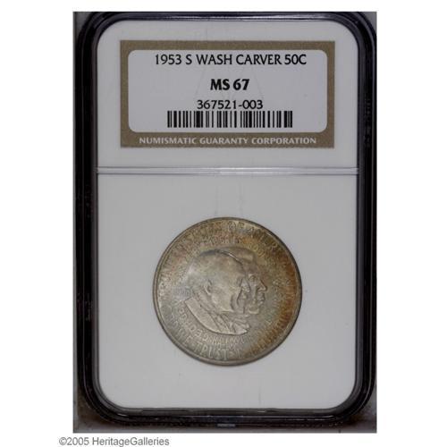 1953-S 50C Washington-Carver MS67 NGC. Orange-red, for 1953-S[50C] Washington-Carver MS67 NGC.