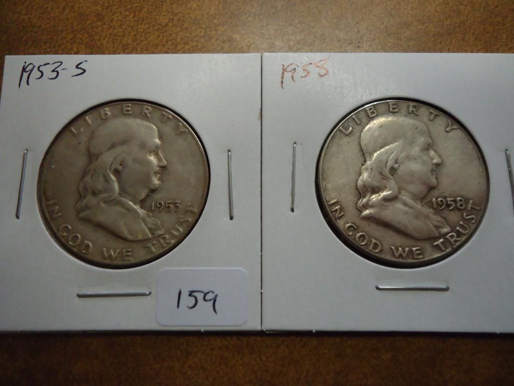 1953-S & 58 FRANKLIN HALF DOLLARS